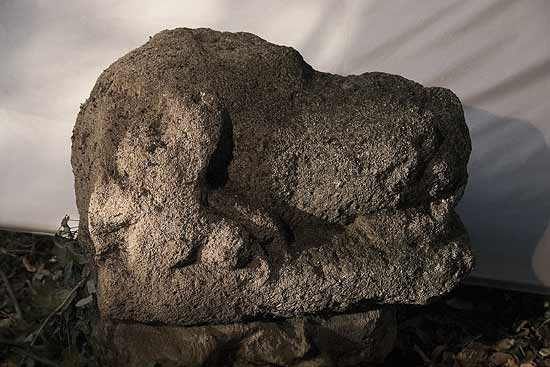 10030 Fragment einer Rundskulptur (Raubtier mit Mensch ?)