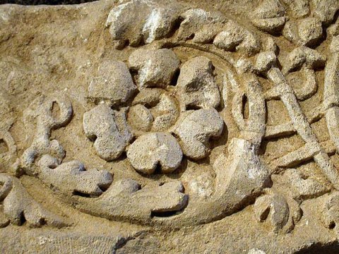 - Akanthusranke: S-förmig von rechts nach links verlaufende Ranke, in der mittleren Rankenwindung sechsblättrige Rosette