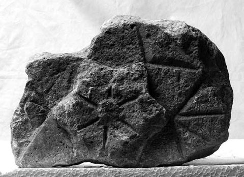 - Zentrale Sternrosette, außen konzentrische Zacken (Ritzzeichnung);