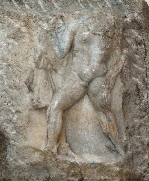 - auf verschollenem Teil des Reliefs soll ein sitzender Hirte dargestellt gewesen sein