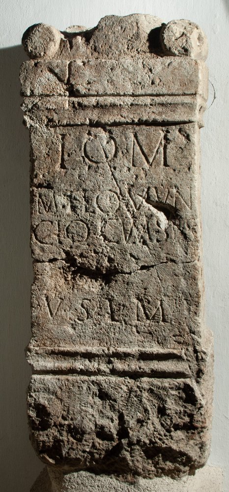 - I(ovi) O(ptimo) M(aximo) / M(arcus) Homun/cio cum suis / [------] / v(otum) s(olvit) l(ibens) m(erito)