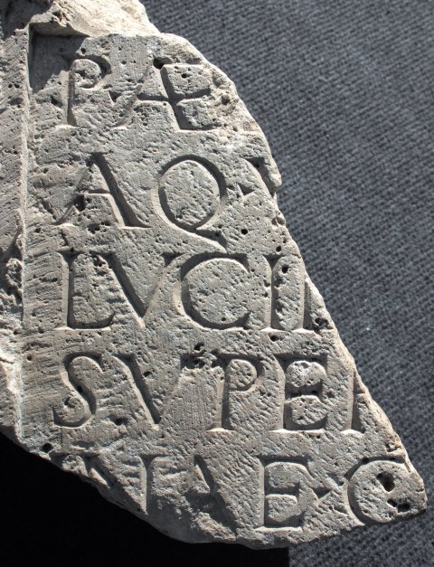 - P(ublius) Ael[ius --- dec(urio)? mun(icipii)] / Aq(uincensium) v[ivus fecit sibi et Ael(iis) ?] / Lucil[--- et --- et] / Super[--- fili(i)s et ---]/inae c[oniugi ---] / [---