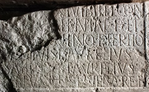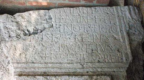 - ---] / [--- an(norum?) ---]X e[t] Vibill(a)e con/[iugi et V]alentin(a)e f(iliae) et / [Satu]rnino f(ilio) tertio et / [su]is vivis p(osuit) Aurelius / Sabinus et Aurelius / [I]us<t=I>us(?) he(redes) bene mere(ntibus) f(ecerunt)