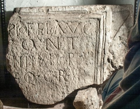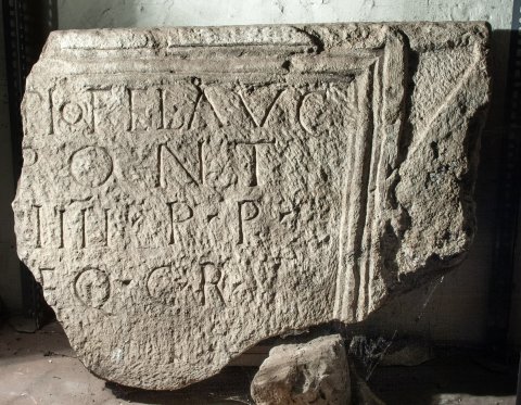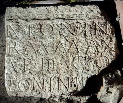 - [Imp(eratori) Caes(ari) M(arco) Aur(elio) Severo A]ntonin[o] Pio Fel(ici) Aug(usto) / [Part(hico) max(imo) Brit(annico) max(imo) Ge]rm(anico) max(imo) pont(ifici) / [max(imo) trib(unicia) pot(estate) XVII? i]mp(eratori) III co(n)[s(uli)] IIII p(atri) p(atriae) / [coh(ors) I n(ova) Sever(iana) S(urorum) s(agittaria) An]toninia[na] eq(uitata) c(ivium) R(omanorum)