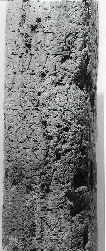 - Imp(erator) Ca[es(ar)] / M(arcus) Aur(elius) S[everus] / Ale[xander] / p(ius) f(elix) Aug(ustus) pon(tifex) [max(imus)] /trib(unicia) / pot(estate) VIIII / co(n)s(ul) III p(ater) p(atriae) / restituit / ab Aq(uinco) / m(ilia) p(assuum) XIV