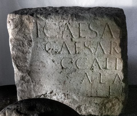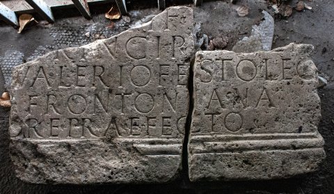- [Imp(eratori) Caesari Vespasiano Aug(usto) pont(ifici) maxim(o)] / [trib(unicia) pot(estate) III imp(eratori) X p(atri) p(atriae) co(n)s(uli) IIII designat(o) V censori] / T(ito) Caesar[i Vespasiano imp(eratori) IIII pont]if(ici) [co(n)s(uli) II des(ignato) III] / Caesar[i Aug(usti) f(ilio) Domitiano co(n)s(uli) II p]rincip(i) [iu]ven[t(utis)] / C(aio) Calp[etano Rantio Quirinale] Valerio Festo leg(ato) / ala [Prima Tungrorum] Frontoniana / L(ucio) M[---]ore praefecto