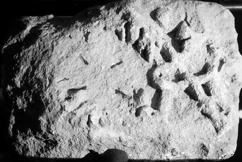 Scheitrecht geschnittener Friesblock, der sich keilförmig nach oben verbreitert; Unterlager: Zahneisen-Glättung, Risslinie in Längsrichtung; Rückseite: stark bestoßene Akanthusranke von rechts nach links verlaufend;
