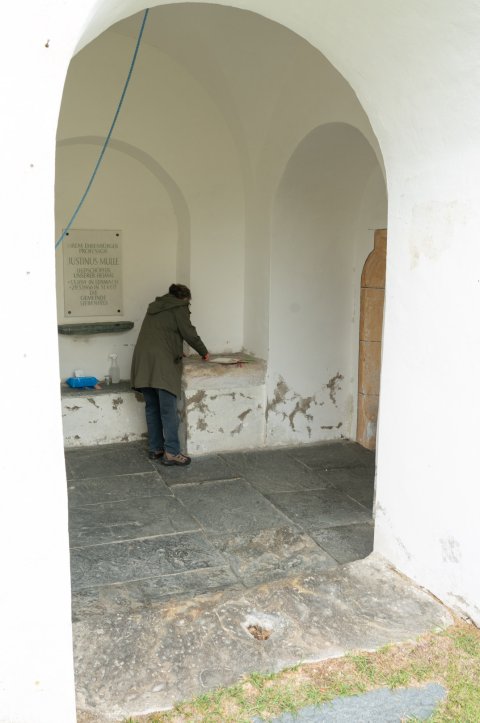 - in der Kirchenvorhalle, Teil des Opfertisches