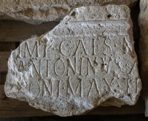 - Imp(erator) Caes(ar) M(arcus) [Aur(elius) [[Commodus]]] / Antoninus A[ug(ustus) Pius Sarm(aticus) Germ(anicus)] / pont(ifex) max(imus) tr[ib(unicia) pot(estate) VI imp(erator) IIII co(n)s(ul)] / [IIII ---