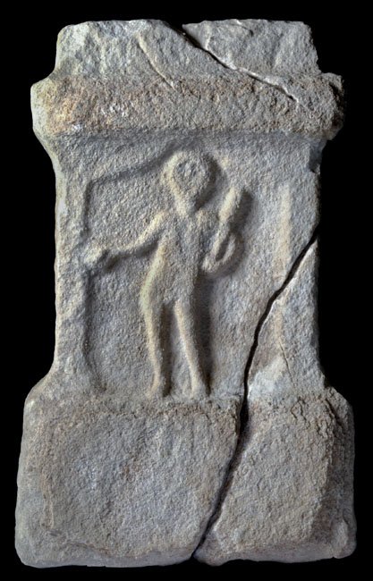 - Mythische Figur: auf der Vorderseite einfach gerahmtes Bildfeld mit stehendem nackten Hercules, Keule im linken Arm, in der Rechten Schale (?).