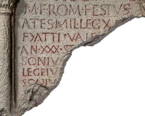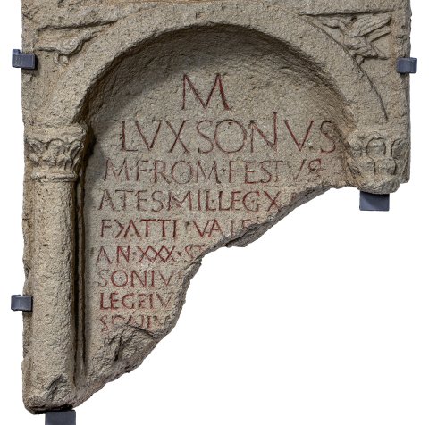 - M(arcus) / Luxsonius / M(arci) f(ilius) Rom(ilia) Festus / Ates(te) mil(es) leg(ionis) XI [C(laudiae) P(iae)] / F(idelis) |(centuria) Atti Vale[ntis] / ann(orum) XXX st[ip(endiorum) --- Lux]/sonius [--- miles?] / leg(ionis) eiu[sdem --- Lux]/soniu[s