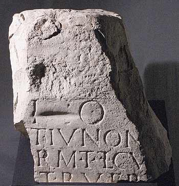 - I(ovi) O(ptimo) M(aximo) / et Iunon[i Reg(inae)] / aram T(itus) Fl(avius) Cu[---] / et Rufr[ia?] / Nonnula e[x v(oto)?] / qui et column[am] / p(osuerunt) l(ibentes) l(aeti) m(erito)