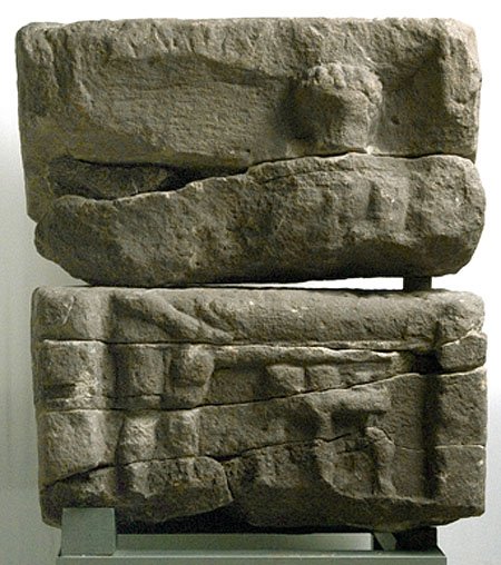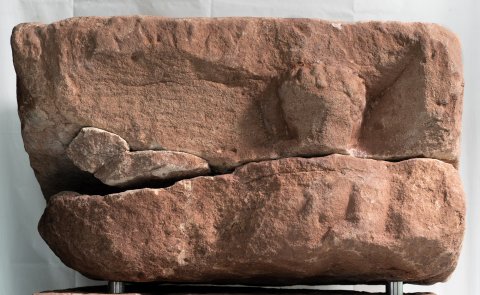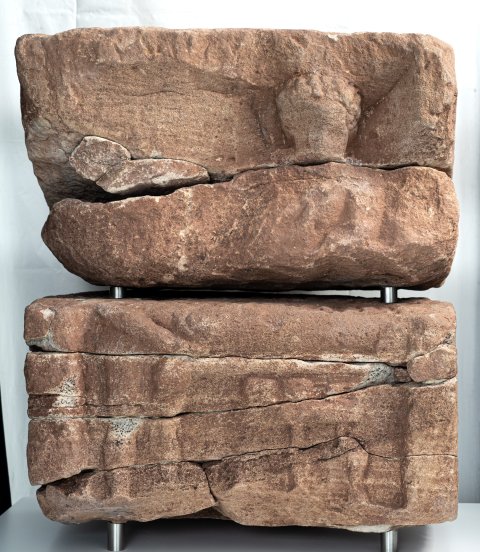 - 2 Fragmente, unten abgebr., Relief stark zerstört