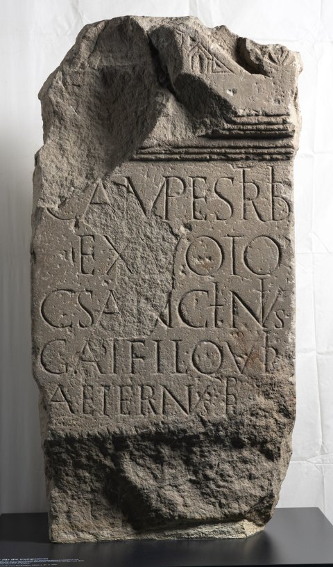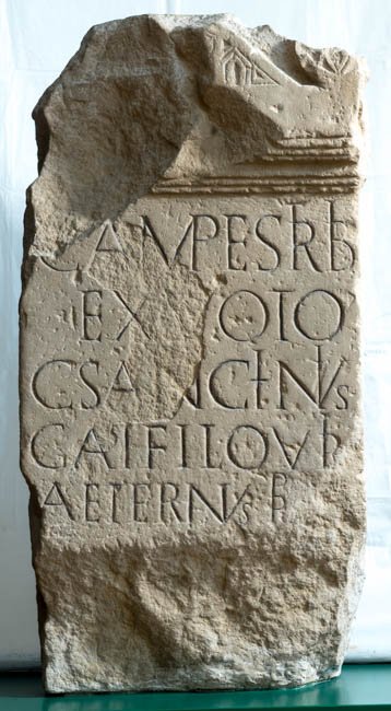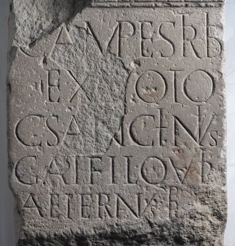 - Campestrib(us) / ex voto / C(aius) Sanctinius / Cai fil(ius) Quir(ina) / Aeternus pr[aef(ectus)?] / [ ---