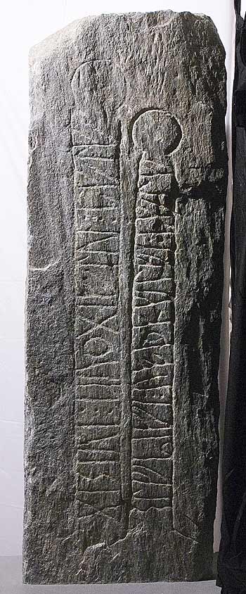 - zwei vertikale Schriftfelder mit geritztem Rand, oben kreisförmiger Abschluss.
