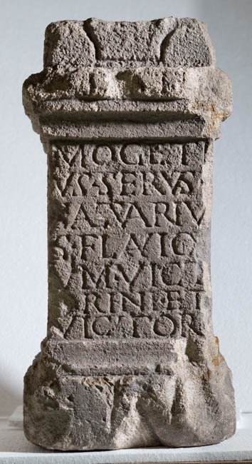- S[il(vano)] sil(vestri) // Mogeti/us serv(u)s / saltuariu/s Flavio[r]/um Vict/orini et / Victor(is) // s(olvit) v(otum) [l(ibens) m(erito)]