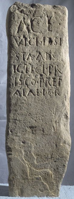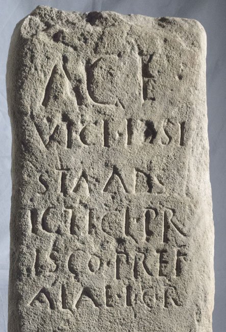 - Age(r) / vici Iosi/sta ads/ig(natus) Ti(berio) Cl(audio) Pr/isco pr(a)ef(ecto) / alae I c(ivium) R(omanorum) // c(aput) a(gri) e(xcepti)