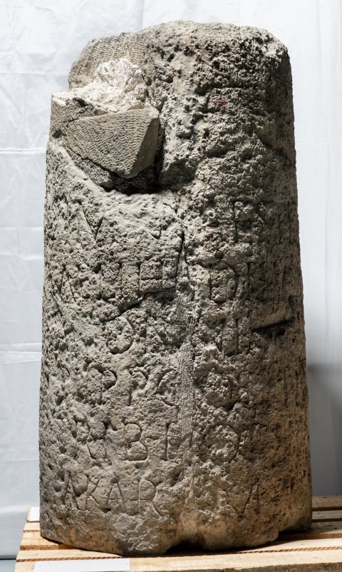 - Im[p(eratoris)] Caes(aris) Titi / Aeli H[a]driani / Anton[i]ni A[u]g(usti) / Pii p(atris) p(atriae) co(n)s(ulis) III / trib(unicia) pot(estate) VI / a Kar[n(unti)] m(ilia) p(assuum) / [XXI]