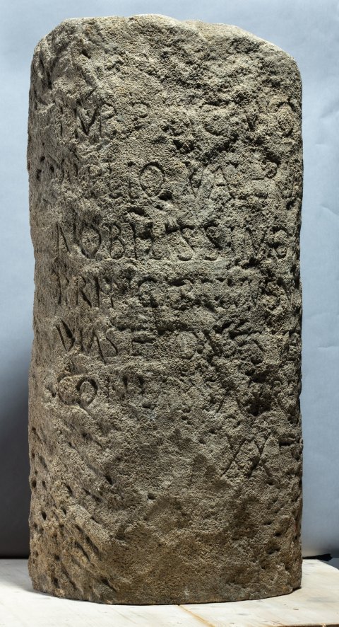 - Imp(eratori) P(ublio) Licinio Cor/nelio Valeriano / nobilissimo Caes(ari) / principi iuventutis / vias et pontes vetust(ate) / conlabsas restit(uit) / XXI