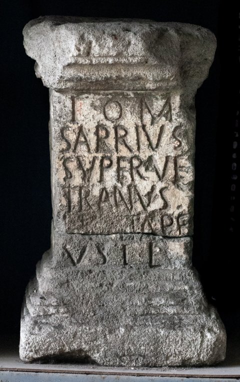 - I(ovi) O(ptimo) M(aximo) / S(extus) Arrius / Super ve/t(e)ranus / [leg(ionis)] II Ad(iutricis) P(iae) F(idelis) / v(otum) s(olvit) l(ibens) l(aetus)