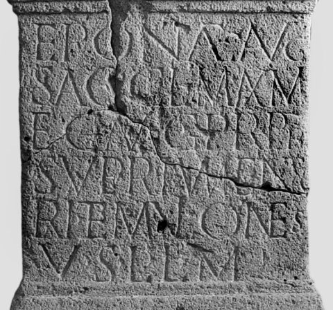 - Eponae Aug(ustae) / sac(rum) Cl(audi) Max(i)mi / leg(ati) Aug(usti) pr(o) pr(aetore) / superiumenta/ri(i) et muliones / v(otum) s(olverunt) l(aeti) l(ibentes) m(erito)