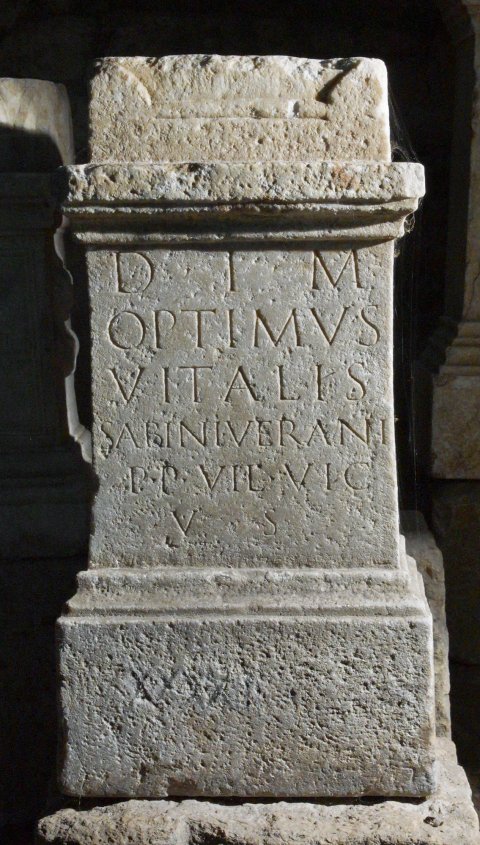 - D(eo) I(nvicto) M(ithrae) / Optimus / Vitalis / Sabini Verani / p(ublici) p(ortorii) vil(ici) vic(arius) / v(otum) s(olvit)