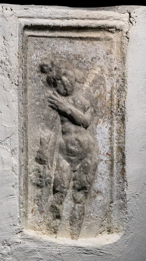 - Trauergenius: nackter geflügelter Knabe mit gesenkter Fackel