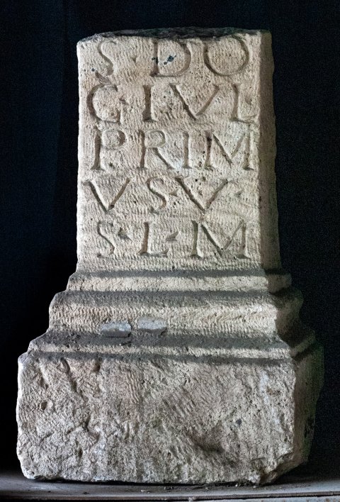 - S(ilvano) Do(mestico) / C(aius) Iul(ius) / Prim/us v(otum) / s(olvit) l(ibens) m(erito)