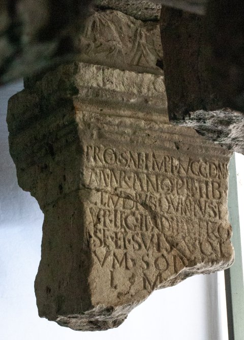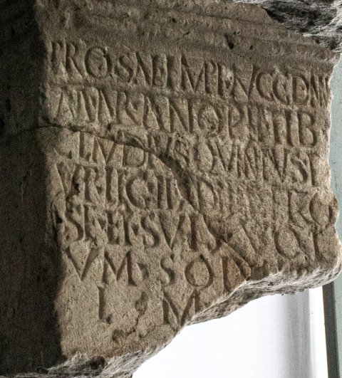- I(ovi) o(ptimo) m(aximo) // pro sal(ute) Impp(eratorum) Augg(ustorum) d(ominorum) nn(ostrorum) / [[M(arci) Aur(elii) Anto(nini) Pii]] Tib(erius) / Claudius Quintus d/up(licarius) leg(ionis) II adi(utricis) p(iae) f(idelis) pro / se et suis vot/um solvit / l(ibens) m(erito) [---?]
