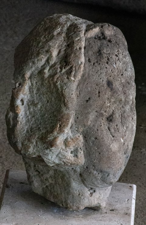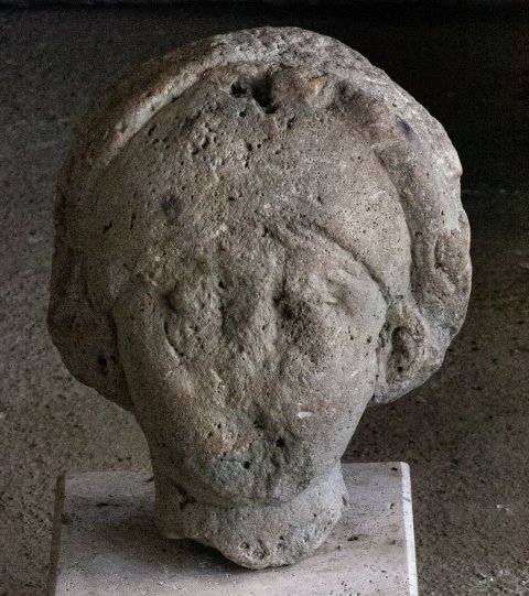 - Einheimische Frau mit Haube (Fragment einer Grabstatue).
