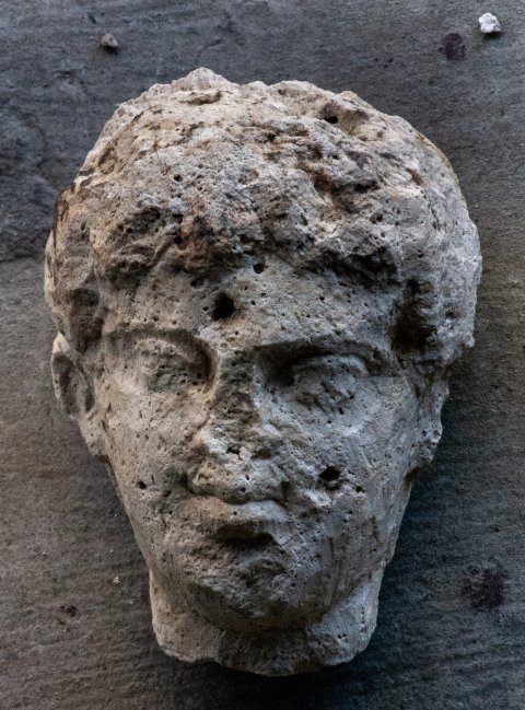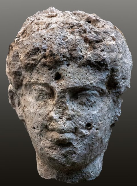 - Kopf eines jungen Mannes, bartlos, lockiges kurzes Haar