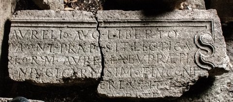 - Aurelio Aug(usti) liberto / P(h)aont(i) praeposit(o) lectica/riorum Aurelia Eupraepia / coniugi carissimo et incomp/arabili b[ene m]erenti et +++ / Paulinus [li]bertus patrono / benemer[e]nti f(aciendum) c(uraverunt)