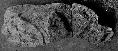 - a)Schwanzspitzen und Zacken der Rückenflosse abgebr. b) Maul, Schwanz, Teile des Bauches abgebr.