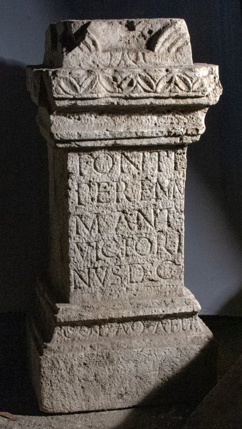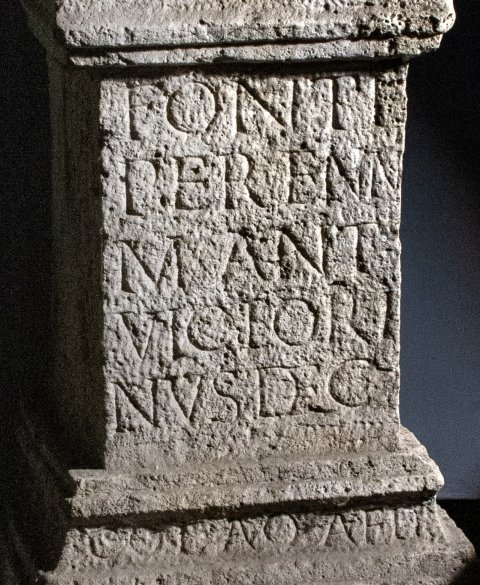 - Fonti / Perenni / M(arcus) Ant(onius) / Victori/nus dec(urio) // col(oniae) Aq(uinci) aed(ilis)