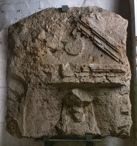 - obere Hälfte erhalten, rundum abgebr., Relief abgeschlaagen