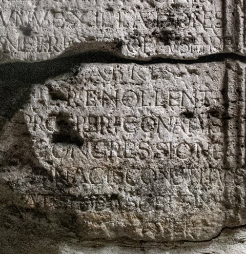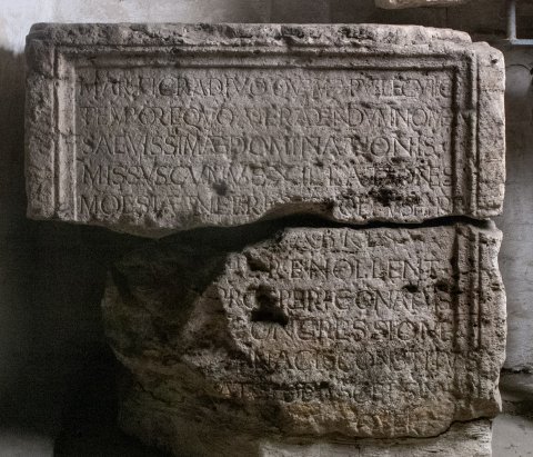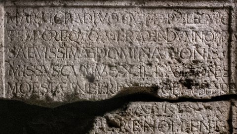 - Marti Gradivo quem aput(!) leg(ionem) VII Cl(audiam) / tempore quo ad eradendum nomen / saevissimae dominationis / missus cum vexillationes / Moesiae inferioris voltus hh(ostium) pp(ublicorum) / [---]tabris / [---]here nollent / [---]prosperi conatus / [---] congressione / [---] in acie constitutus / [---]rat Clodius Celsinus / [---] voverat