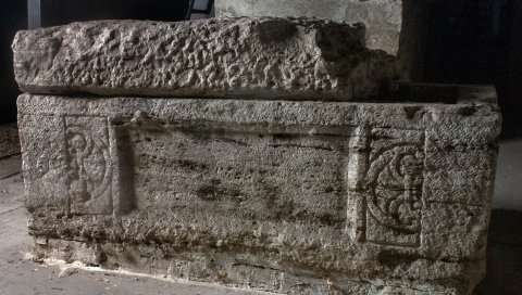 10663 Kinder-Sarkophag mit leerem Schriftfeld