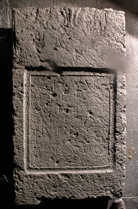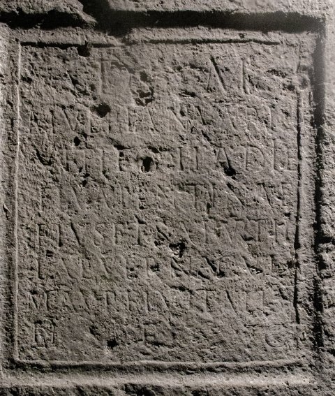 - D(is) M(anibus) / M(arco) Ulp(io) Ianuario / vet(erano) leg(ionis) II adi(utricis) et / Fl(aviae) Valentinae / eius et Saburtil/iae vernacul(ae) / M(arcus) Aurel(ius) Vitalis / h(eres) f(aciendum) c(uravit)