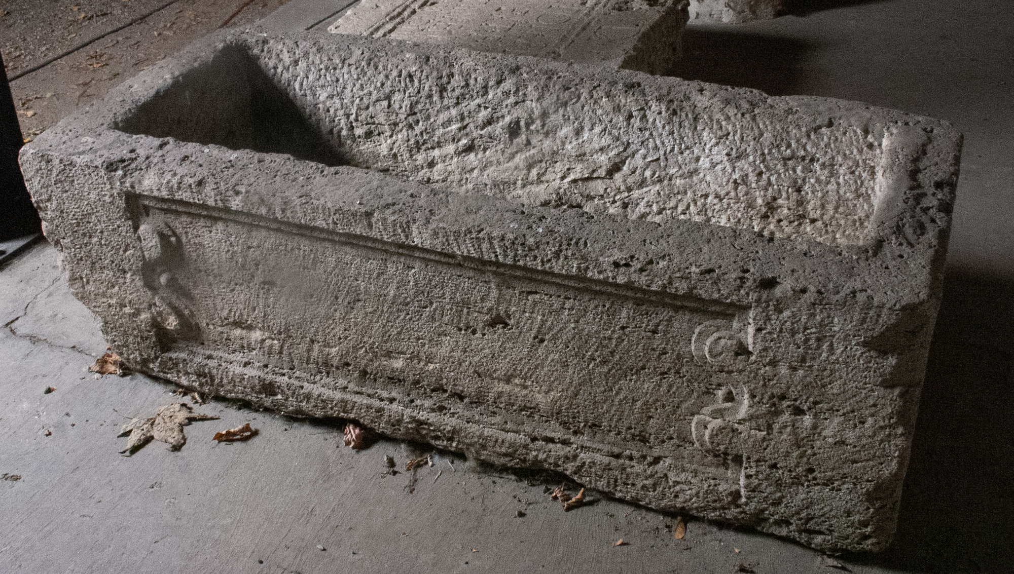 10687 Kinder-Sarkophag mit leerem Schriftfeld