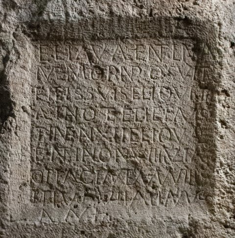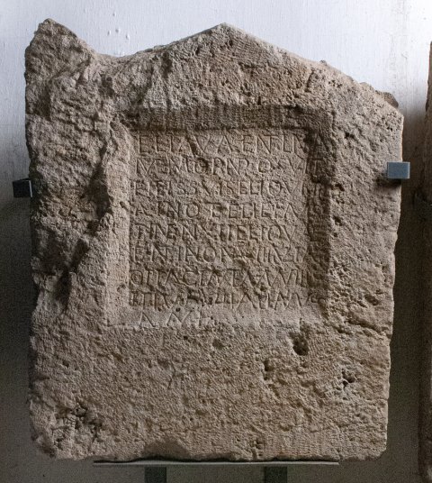 - (A)elia Valentina / memorian (!) posuit / fili(i)s suis (A)elio Vit/aliano et (A)eli(a)e Faus/tin(a)e an(norum) XII (A)elio Val/entiano an(norum VIII Iuliae / Optacian(a)e ann(orum) VIII / et (A)elius) Vitalianus / an(norum) XI