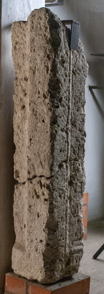 - Schriftfeld mit einfach profiliertem Rahmen. Rechte Nebenseite mit glatter, nach innen abgeschrägter Rahmenleiste.