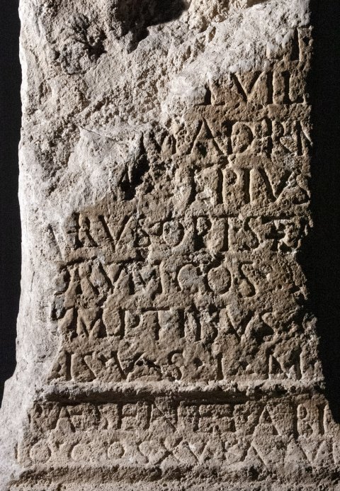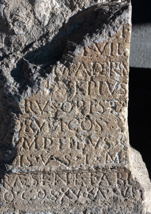 - ---] / [------] / [---]ET (?) / [---]ALVIL /[---]MADEIREN / [et] M(arcus) [U]lpius / [C]arus opt(io) sta/[t]orum co(n)s(ularis) / [s]umptibus / [s]uis v(otum) s(olverunt) l(ibentes) m(erito) // [P]raesente et Albi/no co(n)s(ulibus) XV Kal(endas) Iul(ias)
