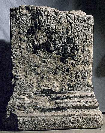 - I(ovi) O(ptimo) M(aximo) / Iunoni / Neptuno / Marti L(ucius) Val(erius) / Italus opt/imo colle/gio negotiantium / d(ecreto) d(ecurionum)