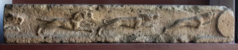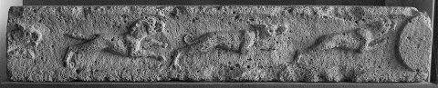 - Fries (Soffitte ?) mit nach rechts laufenden Tieren (Raubtier ?, Hund mit Halsband, der Hasen (?) verfolgt).An der rechten Schmalseite glattes halbrundes Feld.