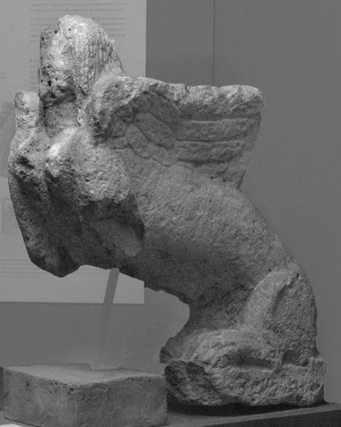 - sitzende geflügelte Sphinx (Grabstatue ?)