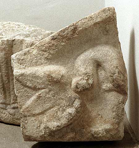 - Giebel mit Meerwesen: Rest der linken Ecke mit Fischschwanz.