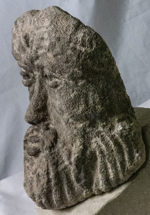 - Gesichtsteil eines bärtigen Mannes (Maske, Teil einer Wand- oder Brunnen?dekoration).