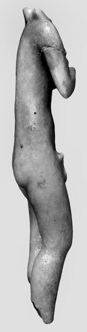 - Rückseite flach. Kopf, rechte Hand, linker Unterarm, beide Füße fehlen