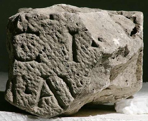 - Depotraum im Keller. Die 2 unteren Fragmente im Steindepot des Aquincum-Museums