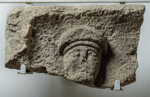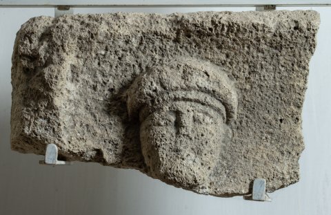 - Kopf einer einheimischen Frau mit anliegender Haube (Porträtstele ?)